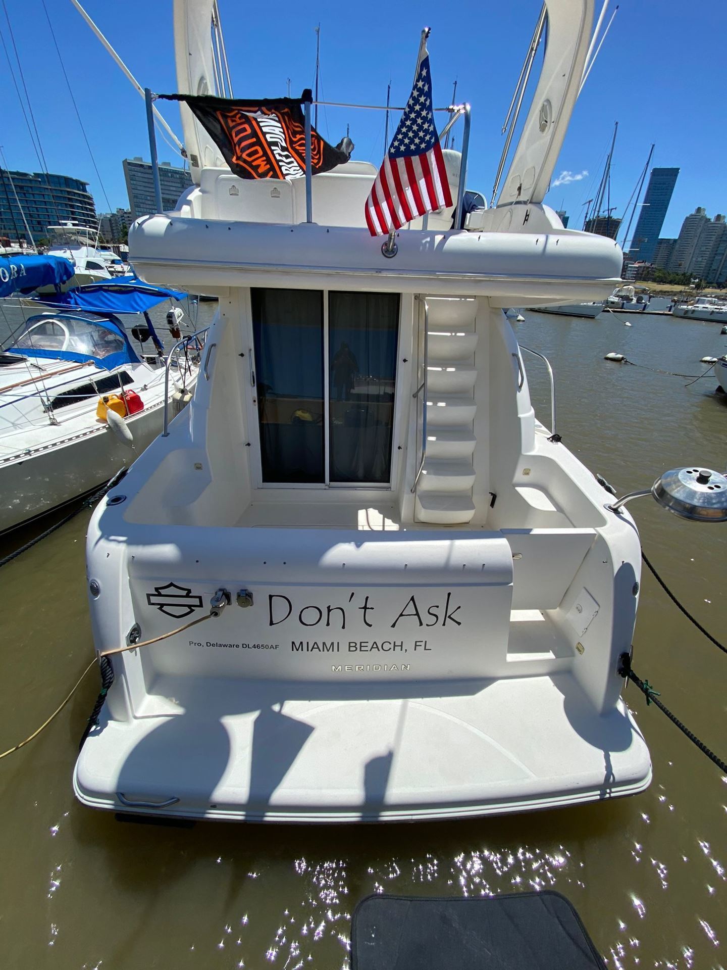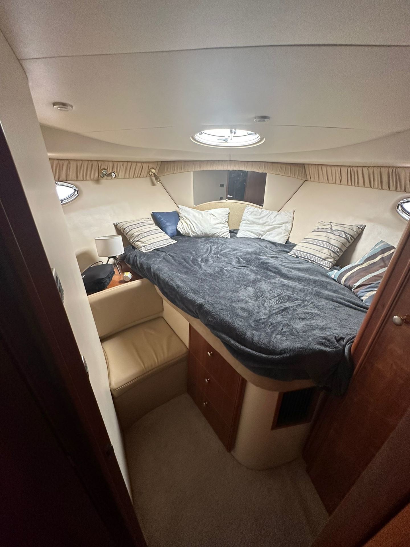 Crucero con flybridge y motores con línea de eje, muy cómodo y con finas terminaciones