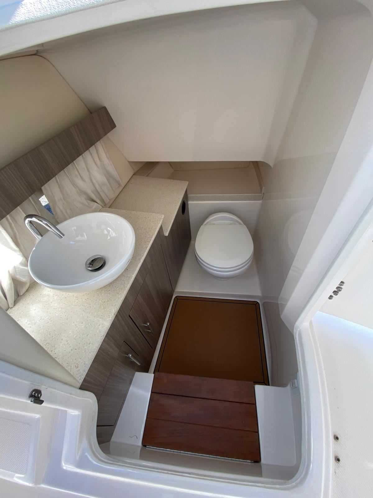 - Inodoro eléctrico con tanque de aguas servidas y bomba maceradora para descarga al mar
