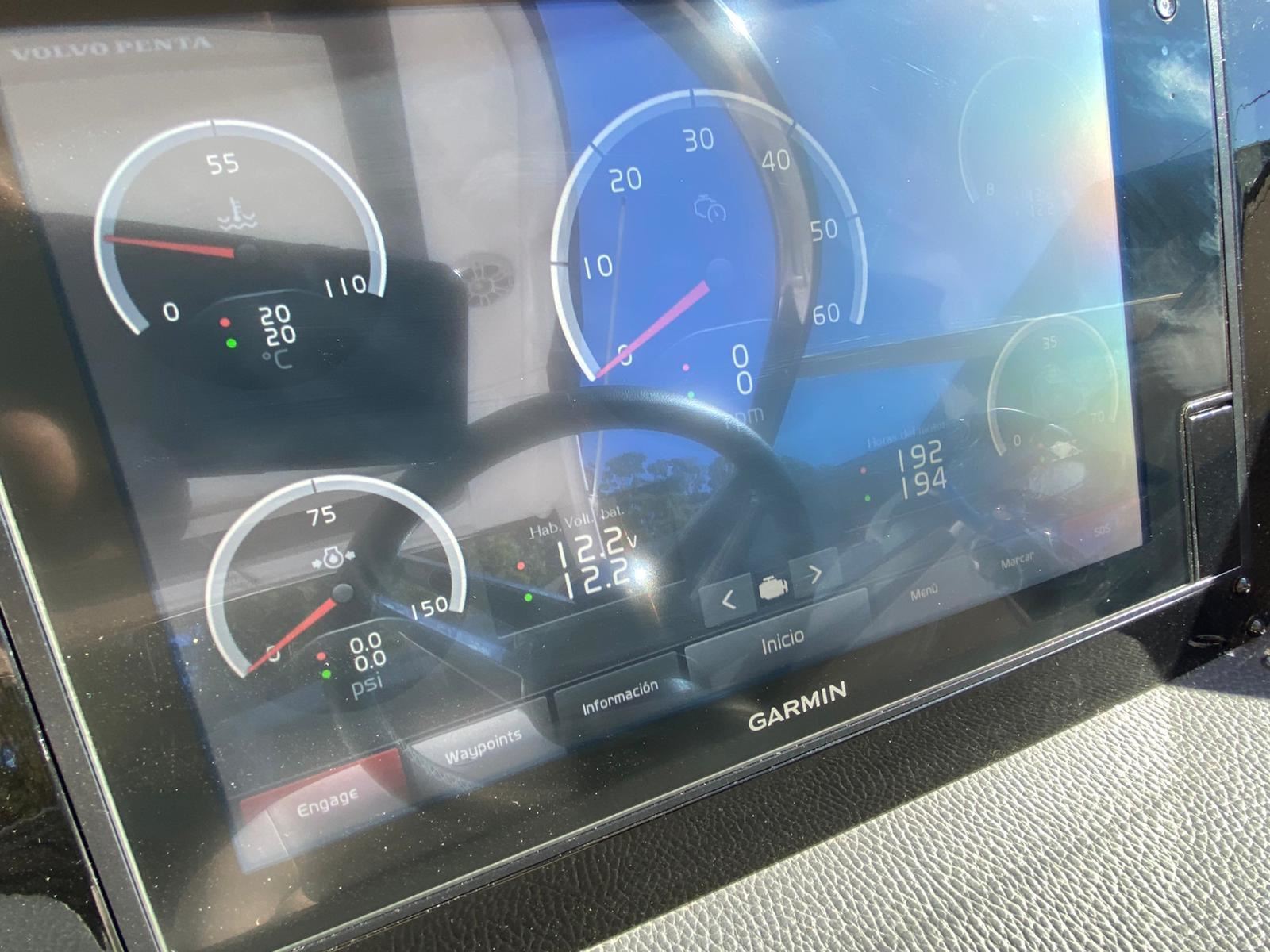 - GPS/Plotter multifunción Garmin/Volvo Glass cockpit con instrumentación de motores incorporada