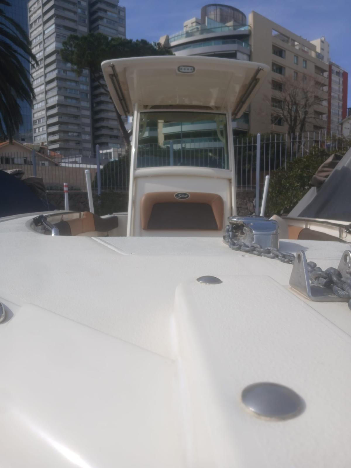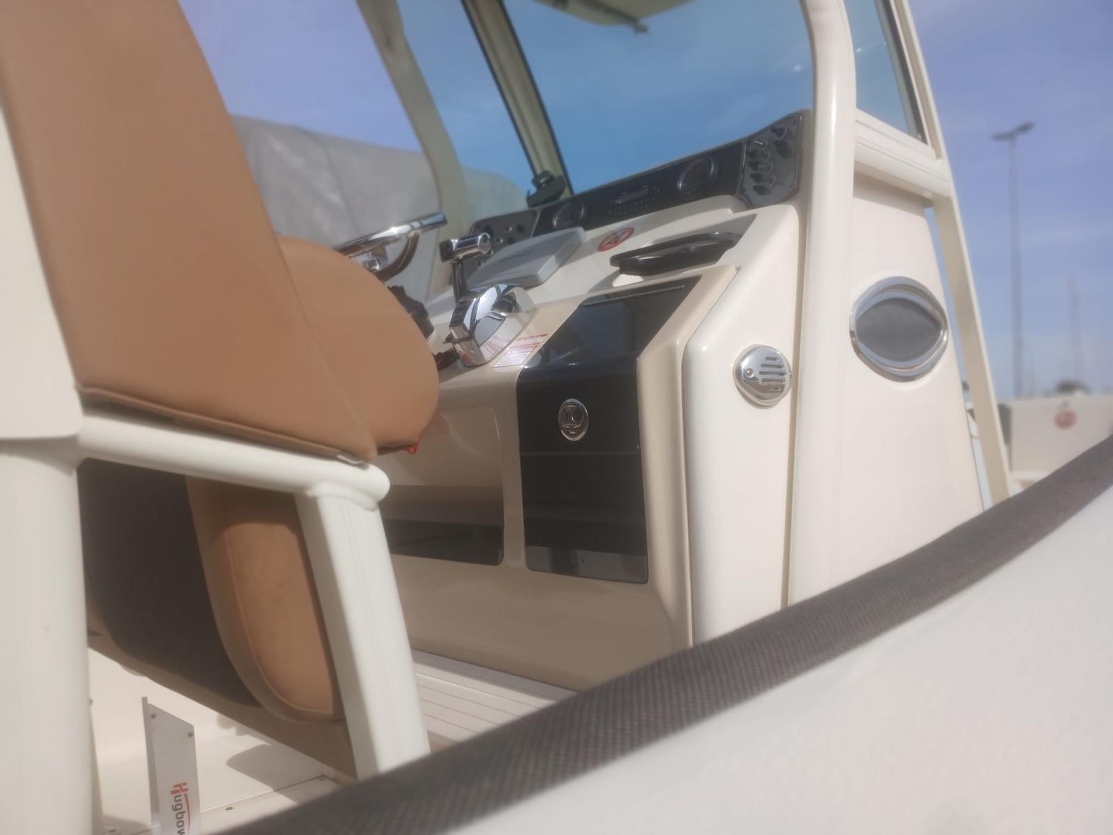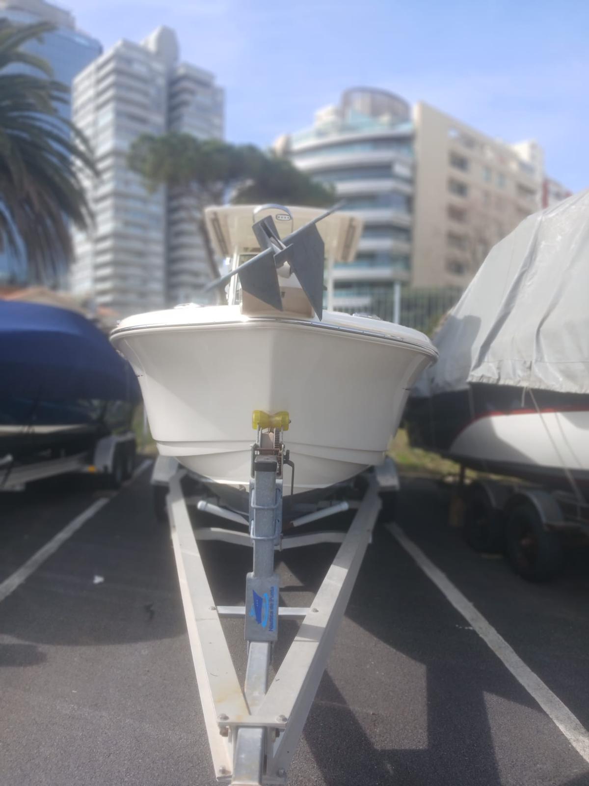 Lancha pescadora americana, lista para navegar y pescar en el mar. Año 2013