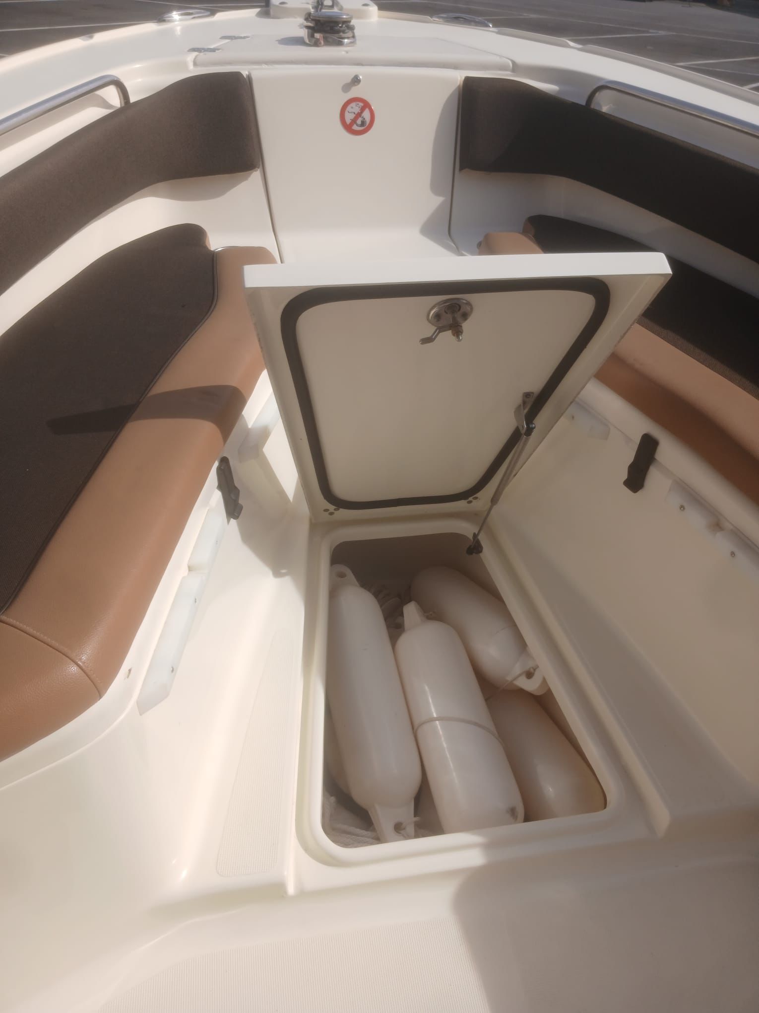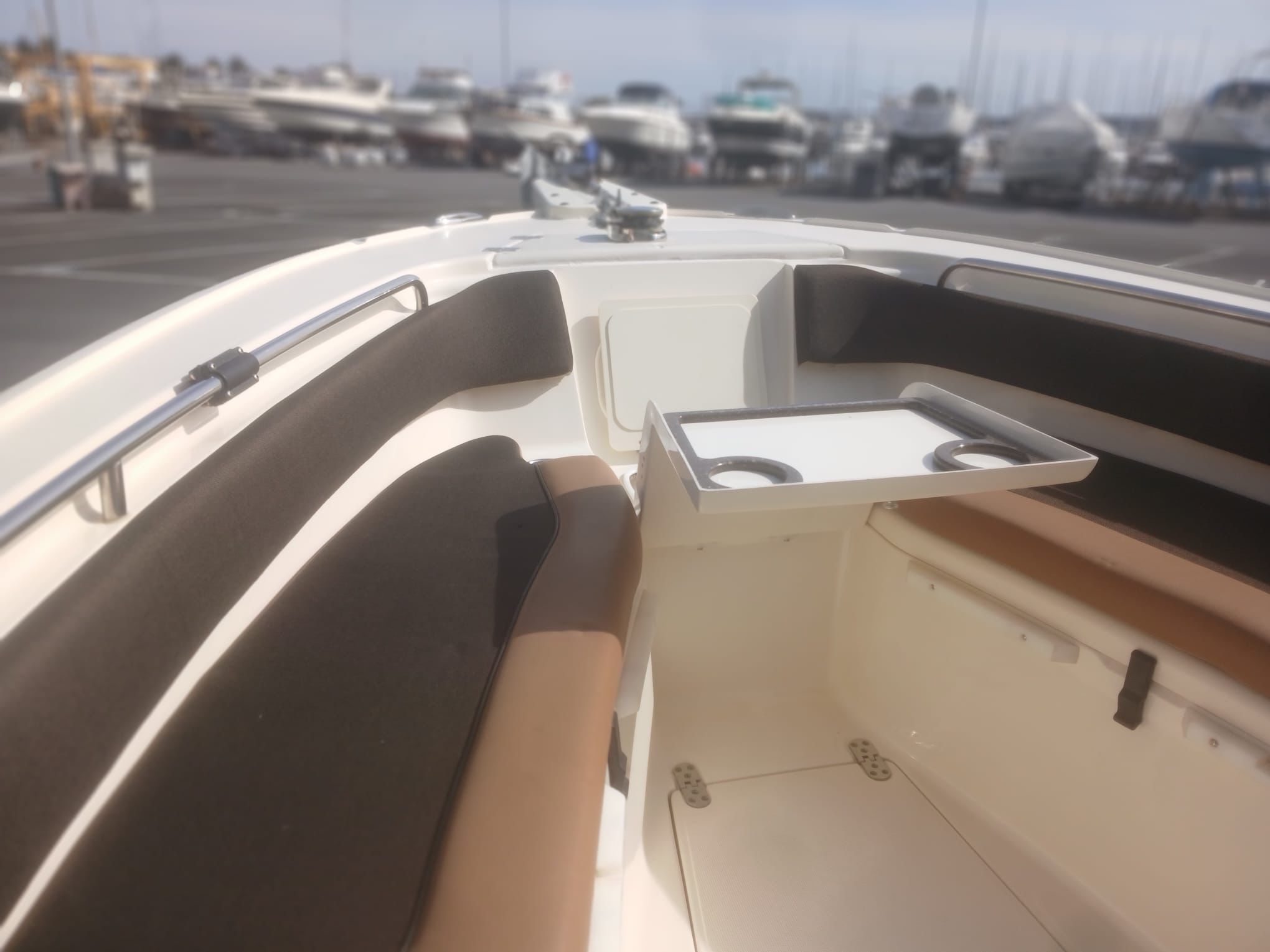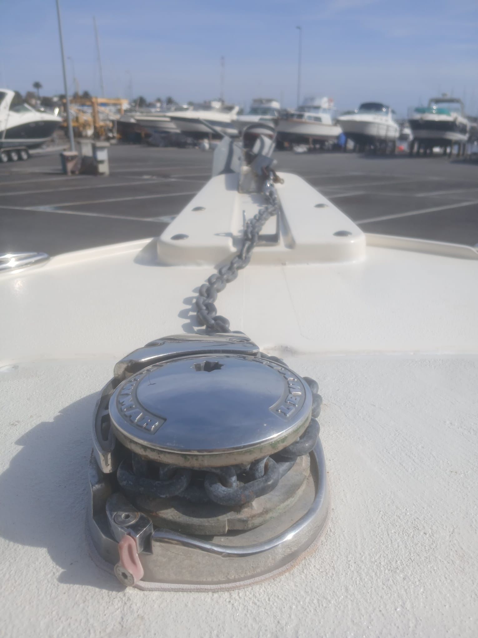 Lancha pescadora americana, lista para navegar y pescar en el mar. Año 2013